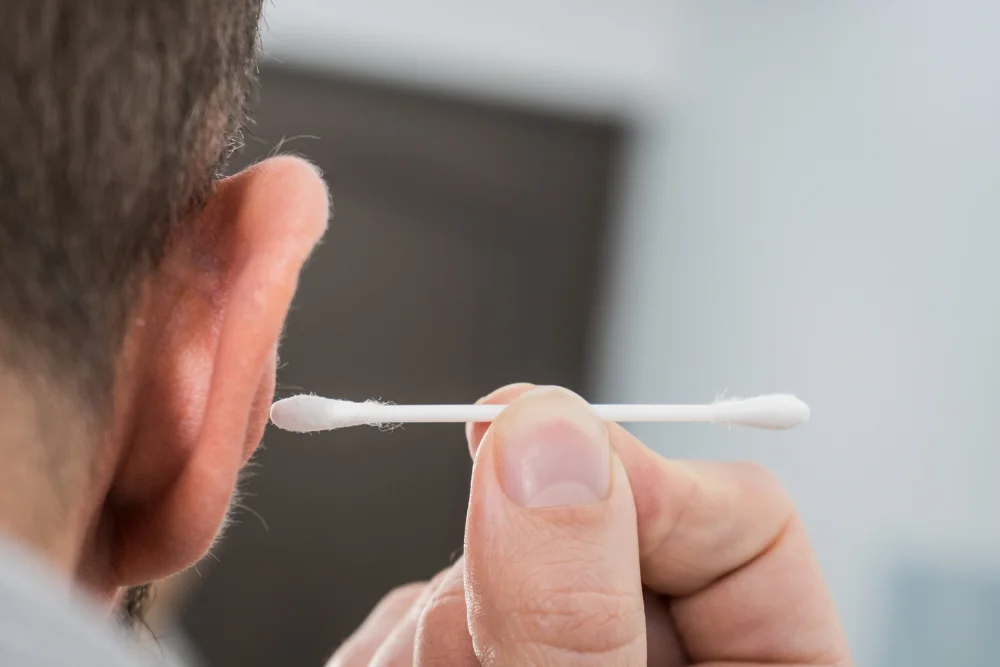 Wipe the outer ear with a damp cloth in the shower and let water drain out. Do not insert cotton swabs. Swabs push wax deeper and can abrade the canal skin, increasing infection risk and causing impaction.